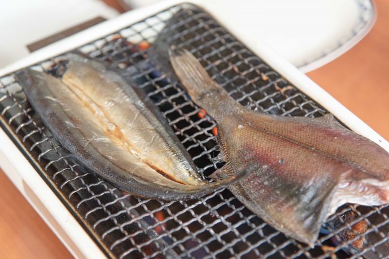 焼き魚定食は、目の前で焼いて食べるスタイルでした。