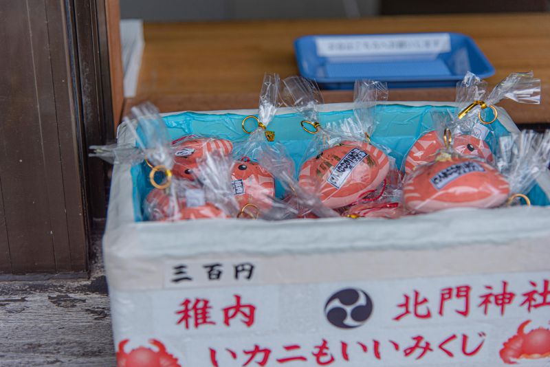 北門神社の境内にある授与所で、上の写真のようなかたちで用意されている「いカニもいいみくじ」。